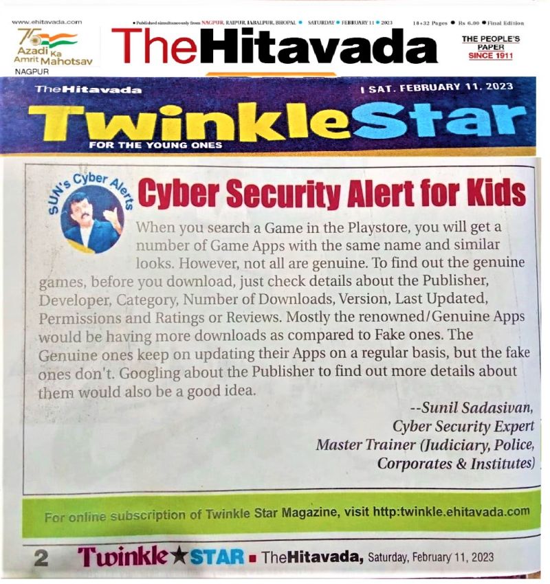 Our chief, Mr. Sunil Sadasivan, an IT Professional, having experience of 25 years in IT, Administration, Training with various Institutions (Govt/Private) and Corporates, already had more than 400 fruitful Cyber Security Workshops all over India. He also is a "Guest Speaker" with Doordarshan for the topic "Stay Safe in Cyber Space". We have introduced Cyber Security Syllabus to SCERT in states, adding one more feather in our Cap.
